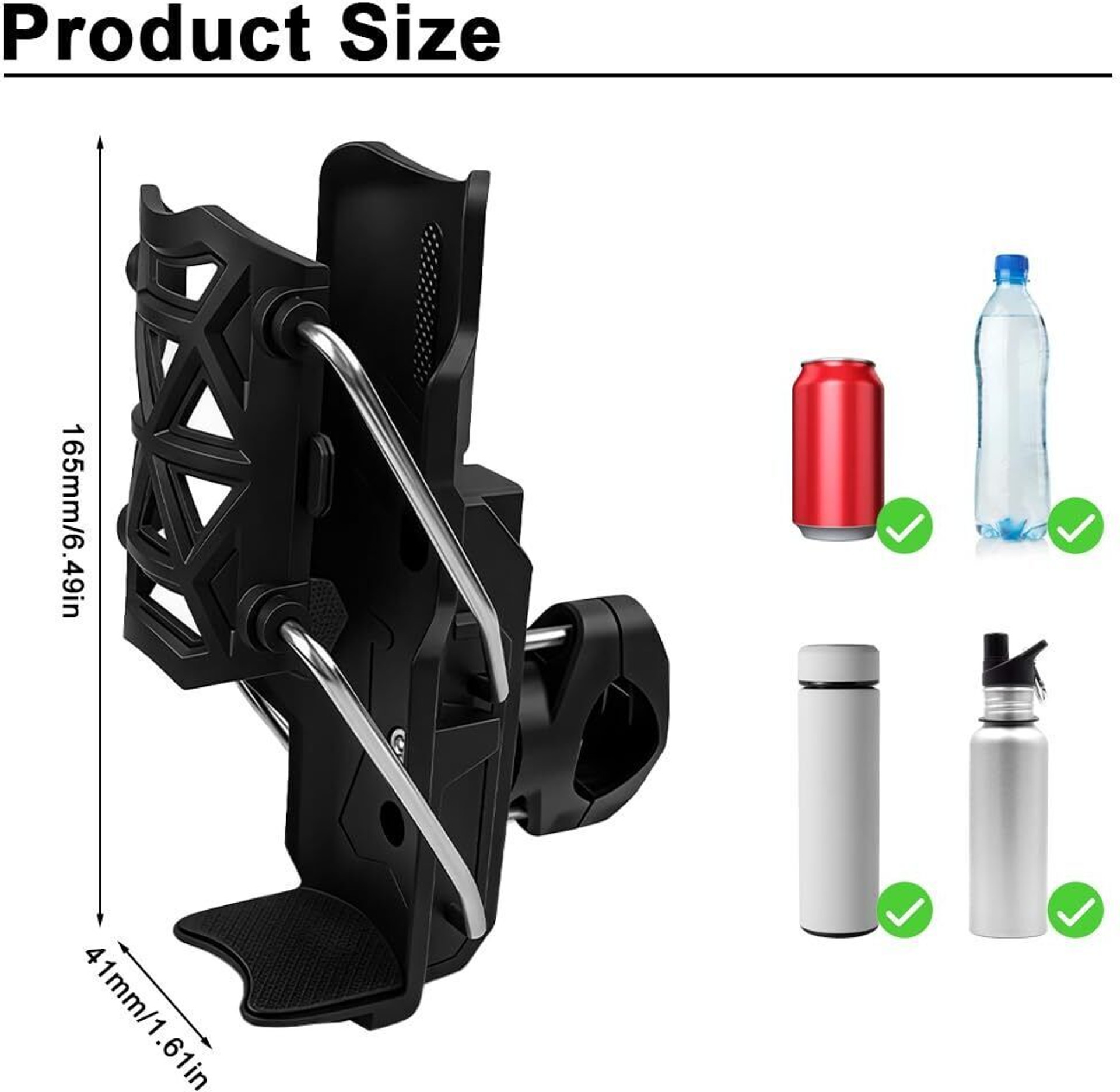 1. Bike Drink Holder | Adjustable Handlebar Fit: Features a versatile design that adjusts to various handlebar sizes, ensuring a snug fit for any bike or motorcycle.